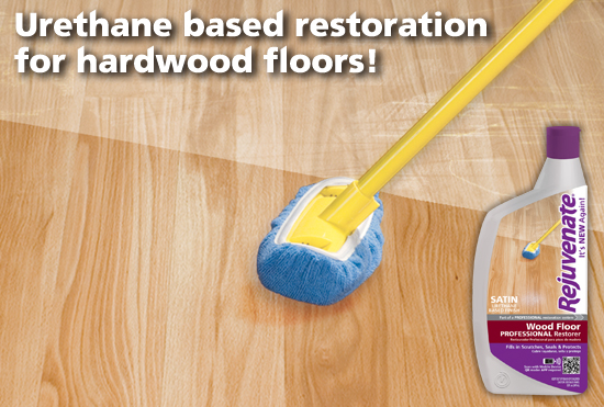 Rejuvenate Professional Wood Floor Restorer is a urethane based finish that is formulated to bring out the shine and natural beauty of fine hardwood flooring. Urethane leaves a tough durable finish with high luster and gloss that will fill in small scratches and resist stains.